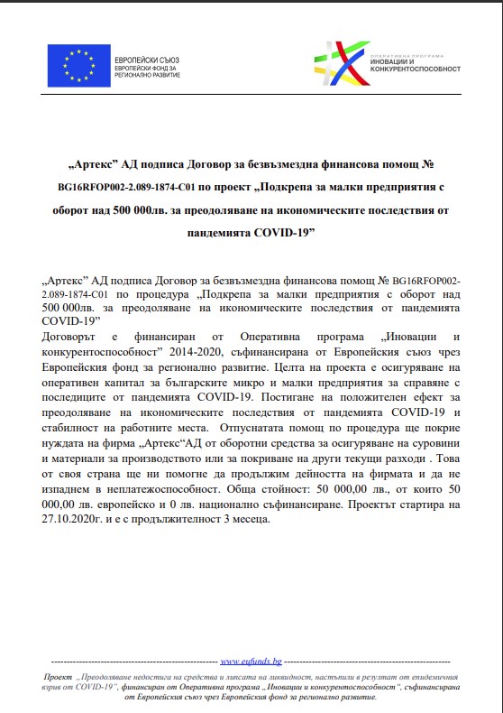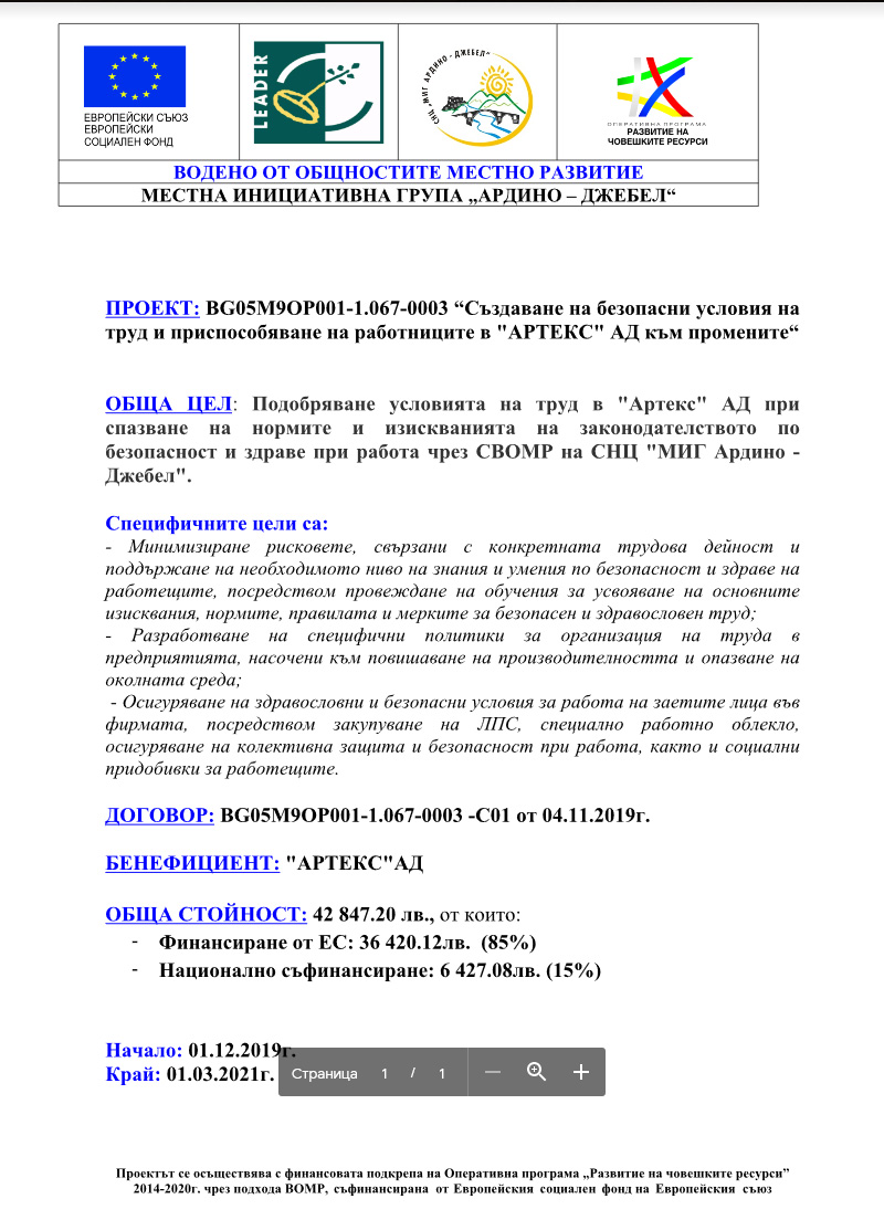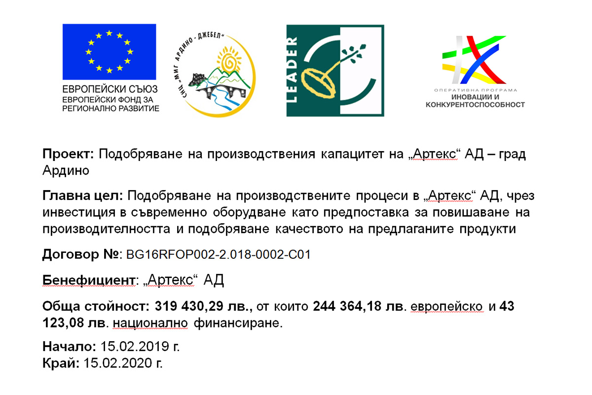 AРТЕКС AД Е СЪЗДАДЕНА ПРЕЗ 1983 ГОД. И СЕ НАМИРА В ПРОМИШЛЕНАТА ЗОНА НА ГР. АРДИНО...